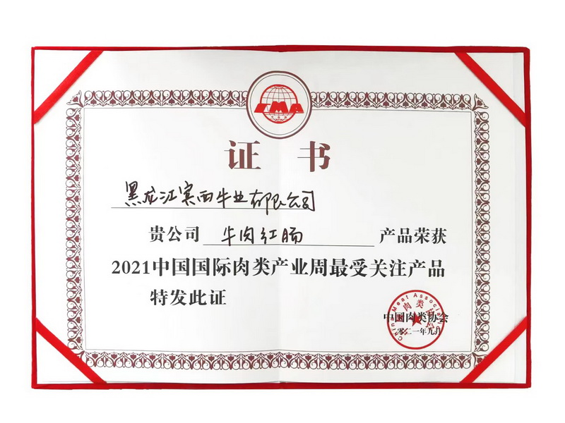 賓西集團(tuán)在一年一度的行業(yè)盛會(huì)收獲頗豐。憑借自身產(chǎn)品力榮獲三項(xiàng)殊榮,進(jìn)一步彰顯了企業(yè)實(shí)力。(1)賓西集團(tuán)榮獲2021“戰(zhàn)斧牛排”、(2)“牛肉紅腸”榮獲2021中國(guó)國(guó)際肉類產(chǎn)業(yè)周最受關(guān)注產(chǎn)品獎(jiǎng);(3)2021第十九屆中國(guó)國(guó)際肉類工業(yè)展覽會(huì)最佳展臺(tái)獎(jiǎng),成為全場(chǎng)焦點(diǎn),品質(zhì)賓西,獲得行業(yè)權(quán)威認(rèn)可。